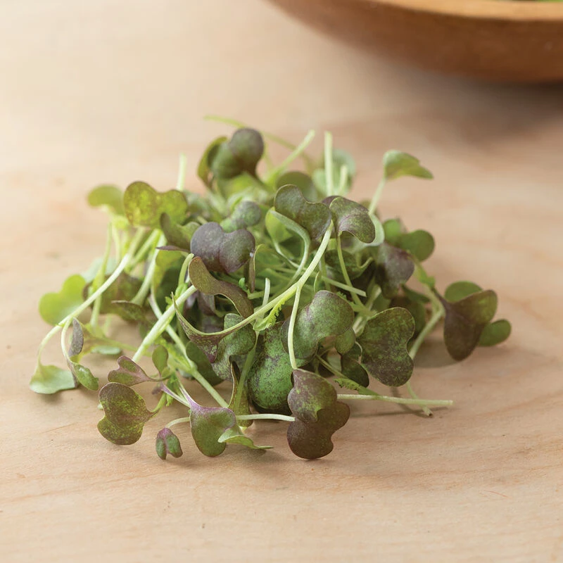 Very spicy flavor. Based on our yield trial, we recommend seeding 9.5 gm per tray at approx. 3 flats per oz of seed. Avg. days to maturity was 14.5 days when harvested at the first true leaf (as opposed to cotyledon) stage.