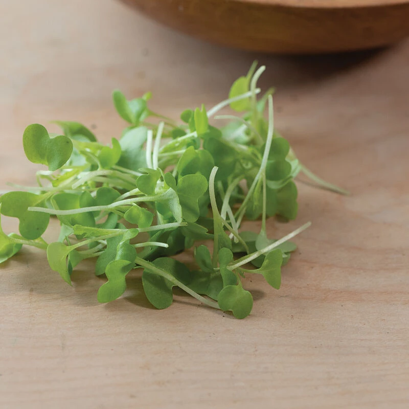 | CULTURE | Grow in a greenhouse or protected area. Follow the germination guidelines for the specific variety being grown. However, you can generally be successful by following the guidelines for brassica family members: grow on potting mix or soilless medium of your choice in shallow trays or 20-row flats. Broadcast seed thickly on the media surface with seeds 1/8- 1/4" apart, press seeds firmly into media for maximum soil contact, and cover lightly with sowing mix, vermiculite, or humidity dome. Microgreens can be germinated on heat mats, in germination chambers, or on greenhouse benches or floors. |