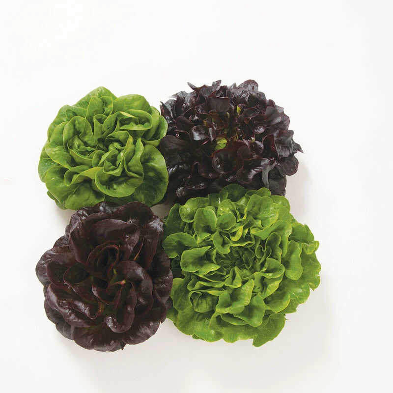 Gorgeous all on its own, but can be combined with the Foundation Collection to grow salad mix with greater volume and weight. This collection includes equal amounts of the cored Butter and cored Oakleaf types (Green Butter, Red Butter, Green Oakleaf, and Red Oakleaf) in individual packages. One quick cut with a knife and heads easily fall into uniform, individual leaves. See the individual varieties for disease resistance information. MT0-30. Pelleted seed. This item can be shipped to Canada.
