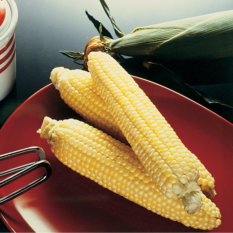 Remains tender for up to two weeks in the field for the longest harvest period of all early corn varieties. The 7″, 14-row ears have relatively narrow, deep kernels, making a nice package. 5-6′, sturdy plants. Best at latitude 38° and higher. Treated seed.